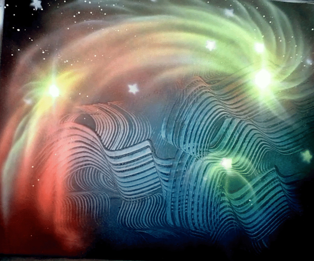 She has developed airbrush techniques that let her students do all the spray paint art techniques with a cheap airbrush. She has also transitioned the spray paint art to water based paints.